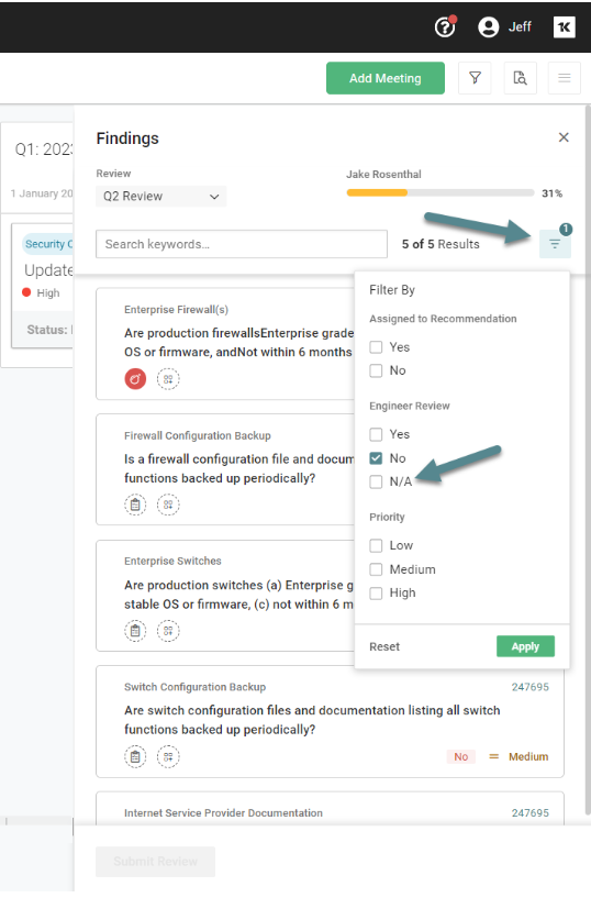 - If all questions on a review have been marked as Internal Use, that review will be automatically completed and the vCIO will not have to answer questions for that review.