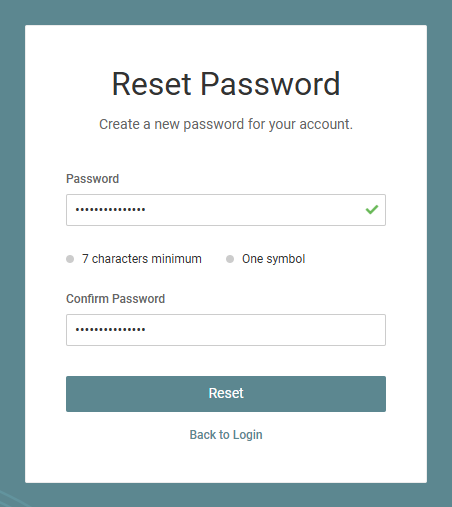 - Click Back to Login to return to the login page.