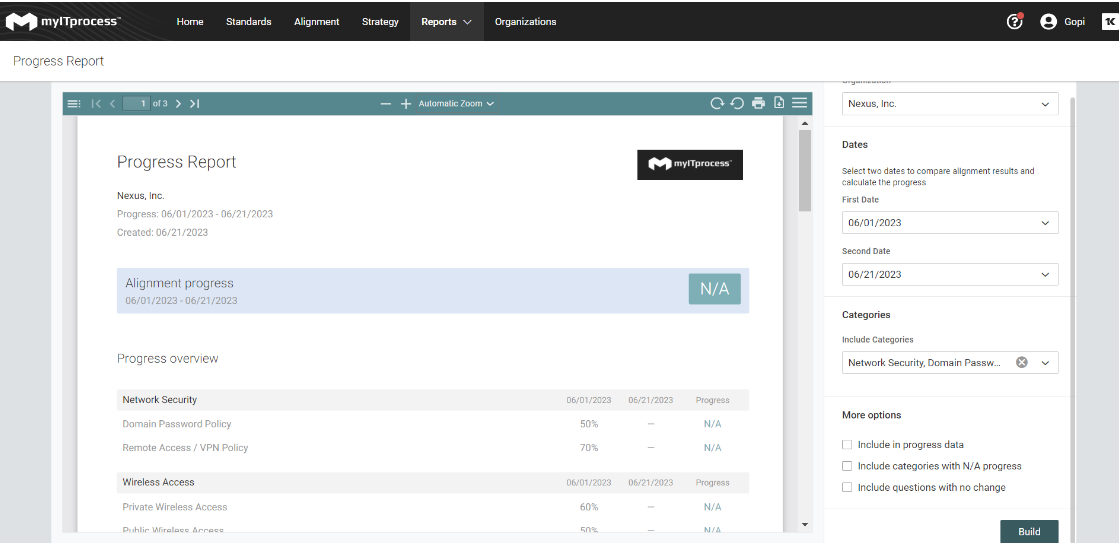 - Specify the categories keeping in mind only categories that have been scored by the vCIO (they submitted their review). Only those will show in this report by default.