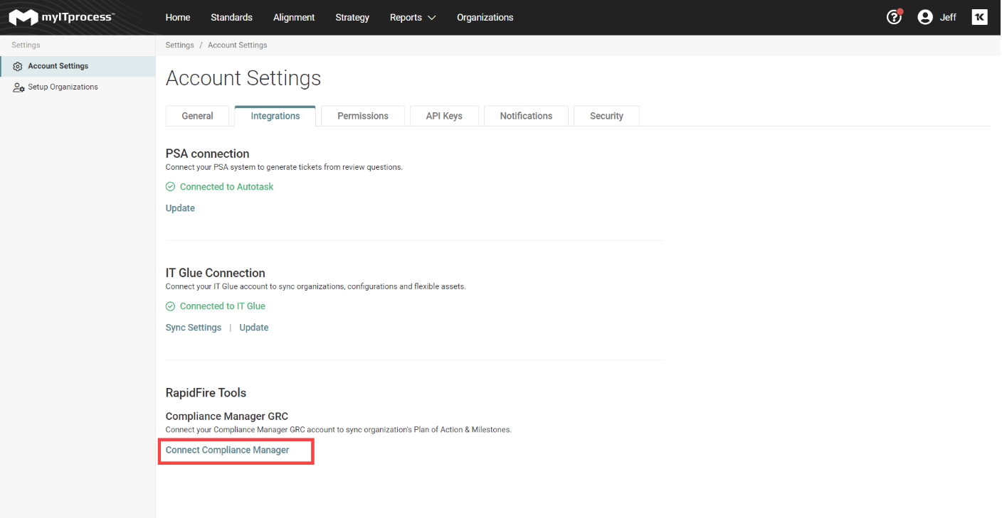 NAVIGATION My Account > Account Settings > Integrations > Connect Compliance Manager