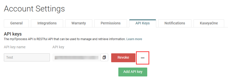 Complete the following steps in myITprocess to delete an API key: