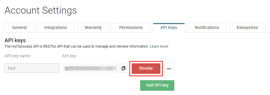 Complete the following steps in myITprocess to revoke an API key:
