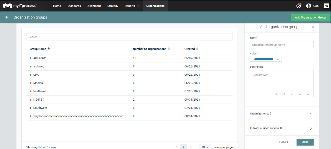 Organization groups allow users to better segment data and provide specific organization access to individual users.