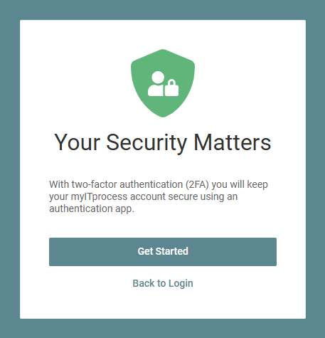 The next time the user logs in, after entering their username and password, they are automatically prompted to set up 2FA to regain access to myITprocess.
