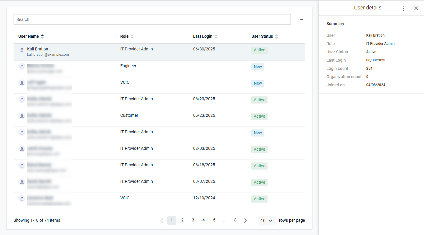 - Click the row of the user you want to view or edit to open the User details pane.