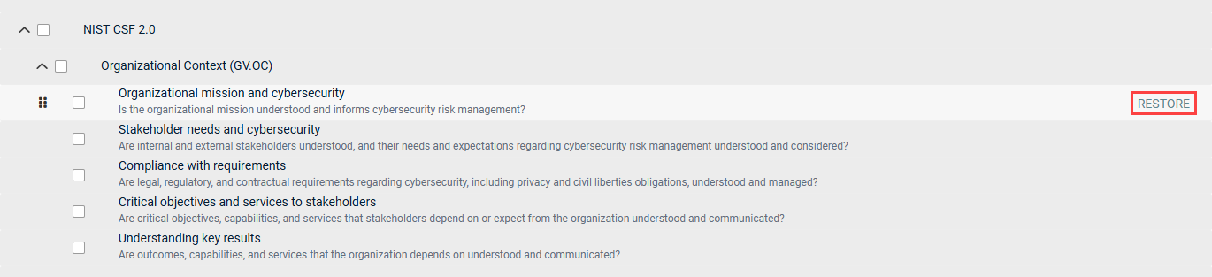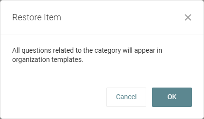 Restored item(s) will once again appear in organization templates they were included in and in future alignment reviews for those organizations.