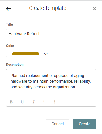 - From the drop-down menu, select a color for the initiative template. Labels for initiatives created from this template will be displayed in this color by default.