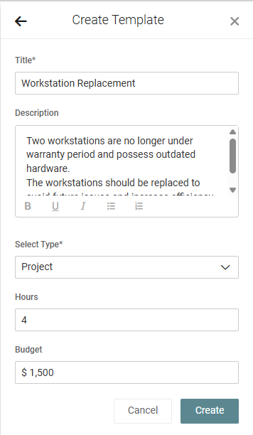 - Enter an estimated budget value. Recommendations created from this template will derive this budget by default.
