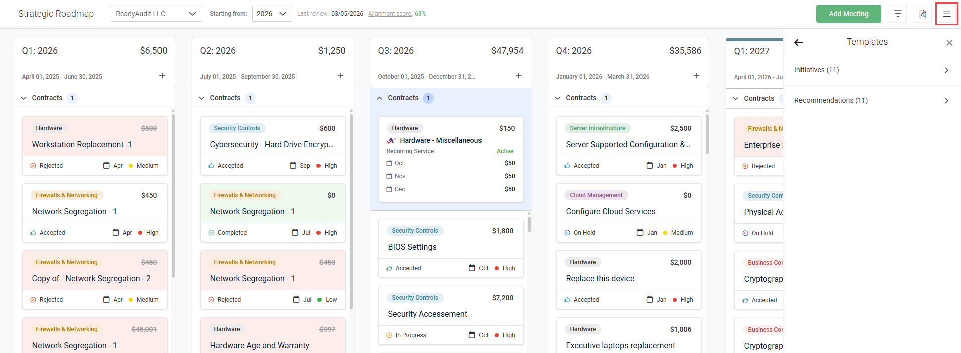 This article explains how to create initiative and recommendation templates on the Strategic Roadmap page. Templates can be reused across all organizations in your account, helping to standardize planning and save time.