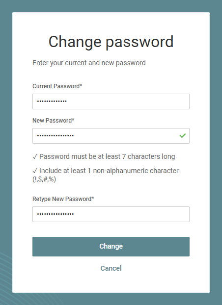 NAVIGATION My Account > Change Password