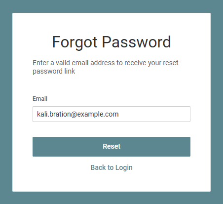 - Click Back to Login to return to the login page.