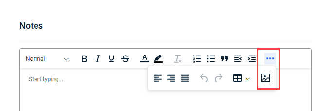 - From the three-dot menu in the toolbar, click the image icon to upload a file saved to your device.
