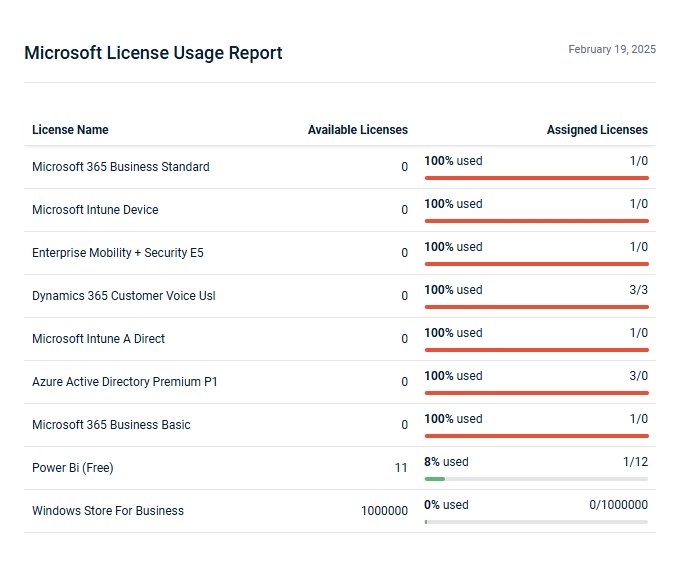 The Microsoft License Usage Report section in the QBR Report Builder enhances QBR reports by providing visibility into Microsoft license consumption. It helps ensure client accounts are properly licensed, identifies gaps, and supports informed discussions around budgeting for additional licenses. This enables improved compliance, more accurate cost planning, and more strategic IT management.