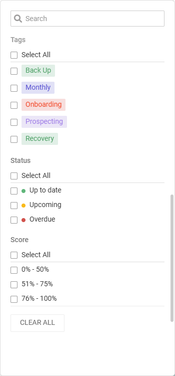 Overdue: Select this checkbox to populate categories that have passed their reminder date (the same categories highlighted in the Overdue banner at the top of the page).