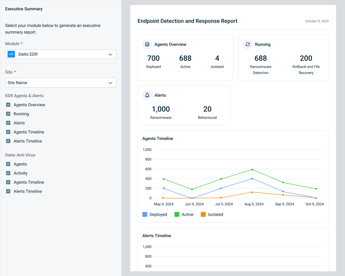 With Endpoint Detection and Response Report metrics, you can showcase a high level of data protection during your QBR.