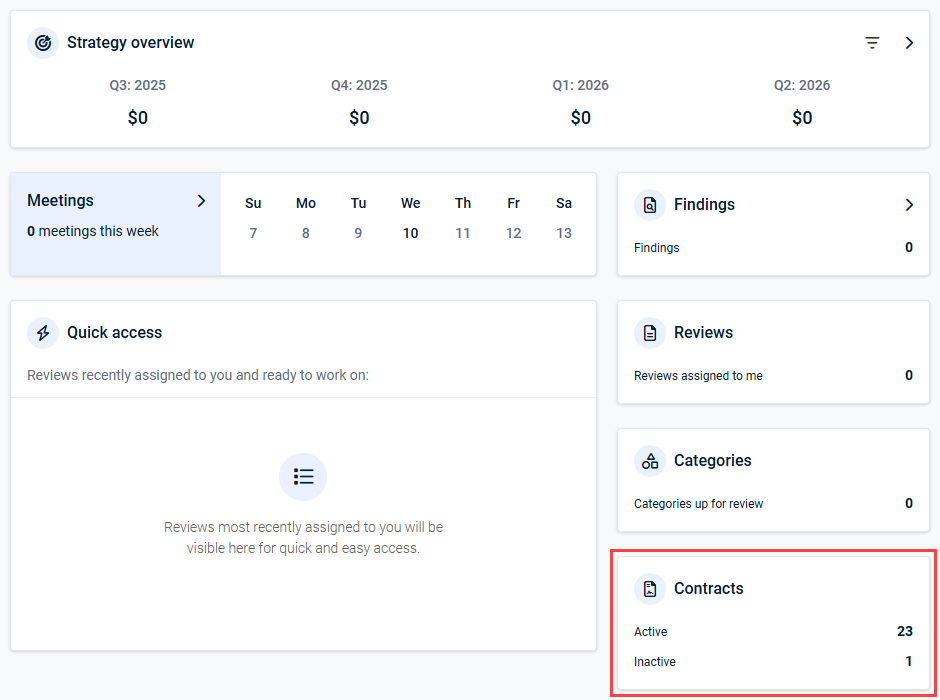 NOTE The contracts and their budgets are not highlighted in the Strategic overview widget on the home page.