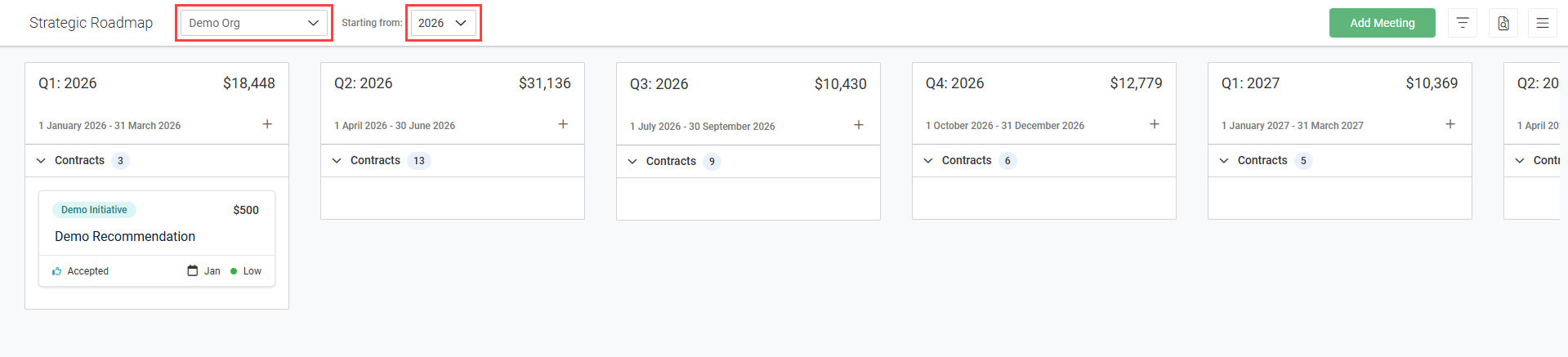 - Contract tiles are reflected in the Strategic Roadmap Overview section.