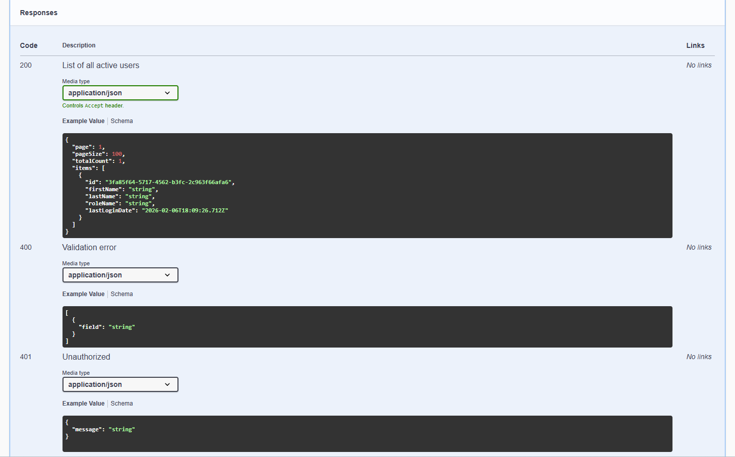 For each response, Swagger UI shows the following: