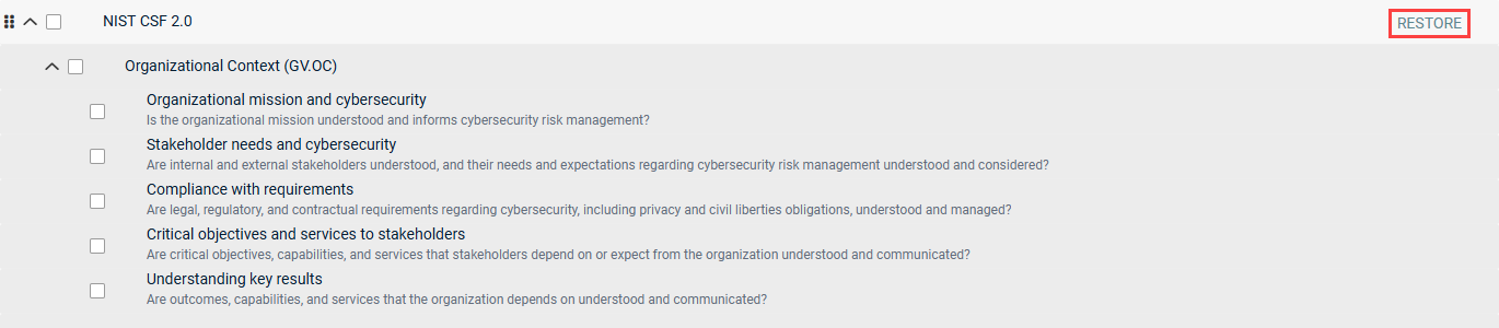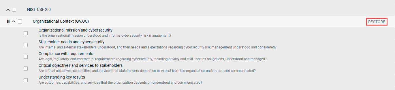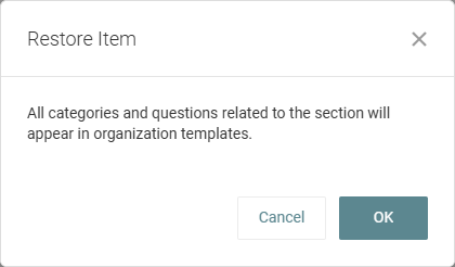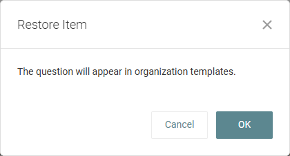 Restored item(s) will once again appear in organization templates they were included in and in future alignment reviews for those organizations.